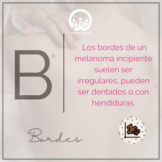 💡B de bordes: los lunares sanos tienen bordes regulares. Si el lunar es irregular, está mal definido o tiene ondulaciones, debe ser chequeado por un profesional.